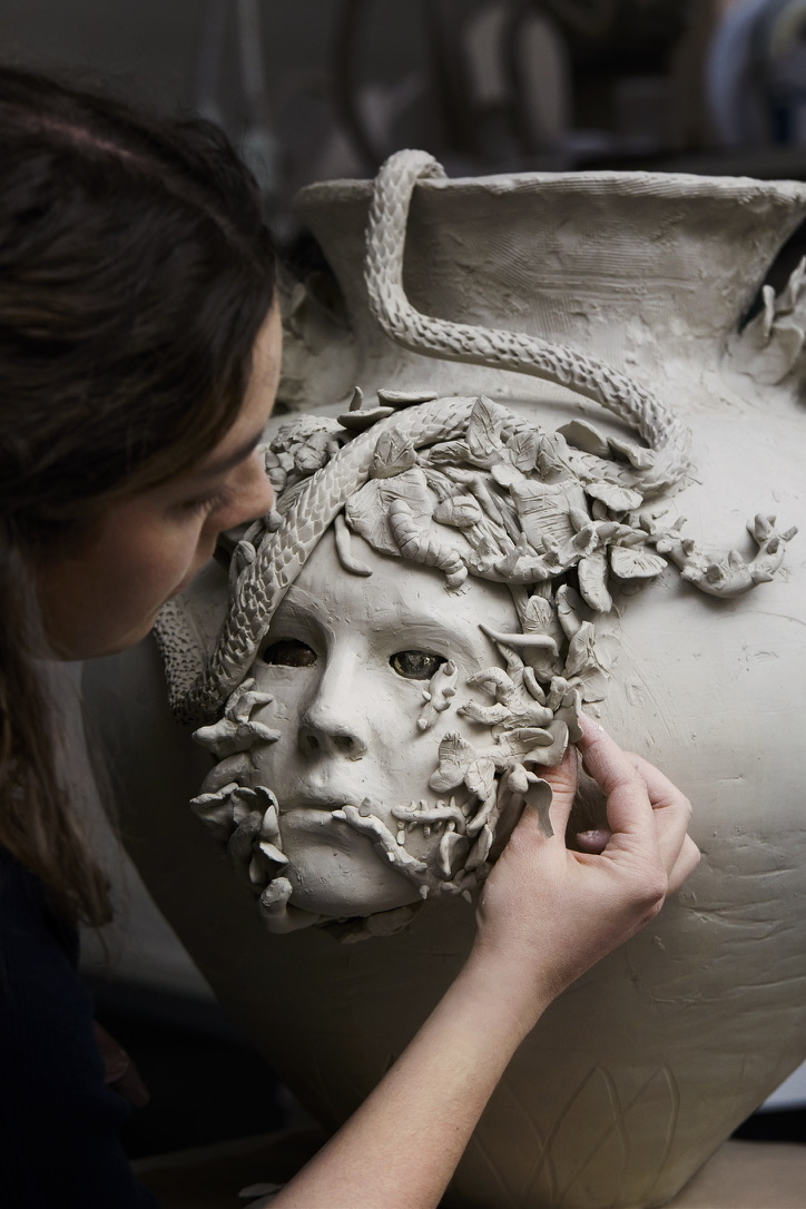Min inspiration kommer oftest fra et interessant ord, psykologisk term eller en eventyrlig fortælling. Nysgerrigheden driver mig ud i en omfattende fordybelse og undersøgelse til det færdige værks udtryk. I processen forholder jeg mig til hvordan jeg kan bruge lerets styrke og kvaliteter til bedst at formidle min vision.